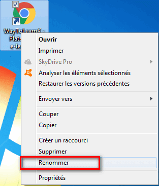 Ce raccourci vierge peut être personnalisé en effectuant un clic droit sur l'icône et en sélectionnant l'option propriétés.